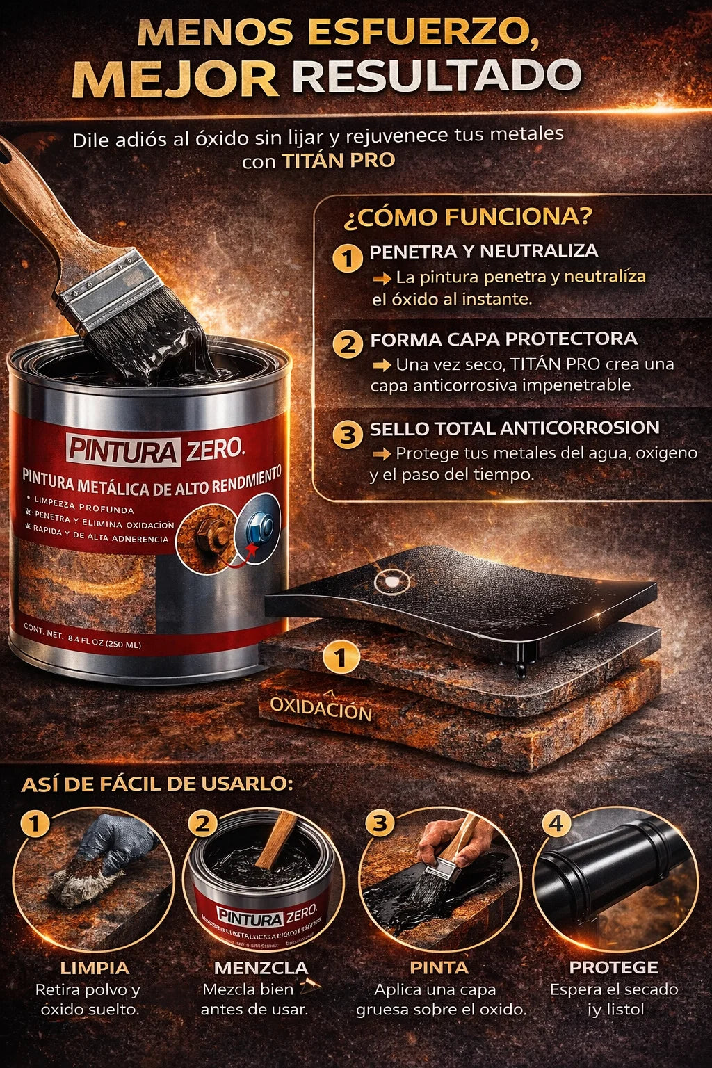 Confirmó que el óxido dejó de avanzar inmediatamente tras aplicar el producto